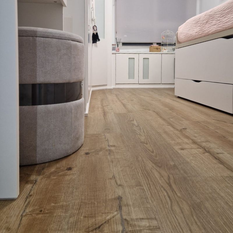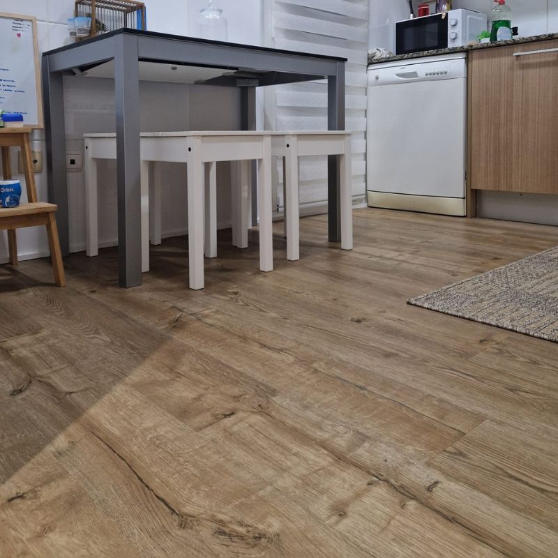 El uso del mismo SPC en todas las estancias permitió mantener una continuidad visual y estética, haciendo que los espacios se perciban más amplios, equilibrados y coherentes. La tonalidad roble montaña aporta un acabado cálido y natural, generando un ambiente acogedor que refuerza la sensación de hogar.
